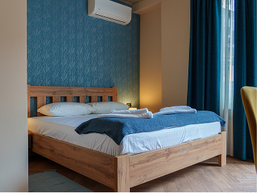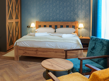 Prostrana i moderno uređena soba pruža vrhunski komfor, sa pažljivo biranim detaljima koji stvaraju toplu i prijatnu atmosferu. Gostima su na raspolaganju udoban bračni krevet, klima uređaj, besplatan Wi-Fi, mini-bar i sve što je potrebno za bezbrižan boravak.