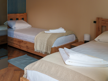 Nasa dvokrevetna soba pruza savršen balans udobnosti i prostora, idealna za parove prijatelje ili kolege na putovanju. Soba je dostupna sa francuskim ležajem ili sa dva odvojena kreveta.